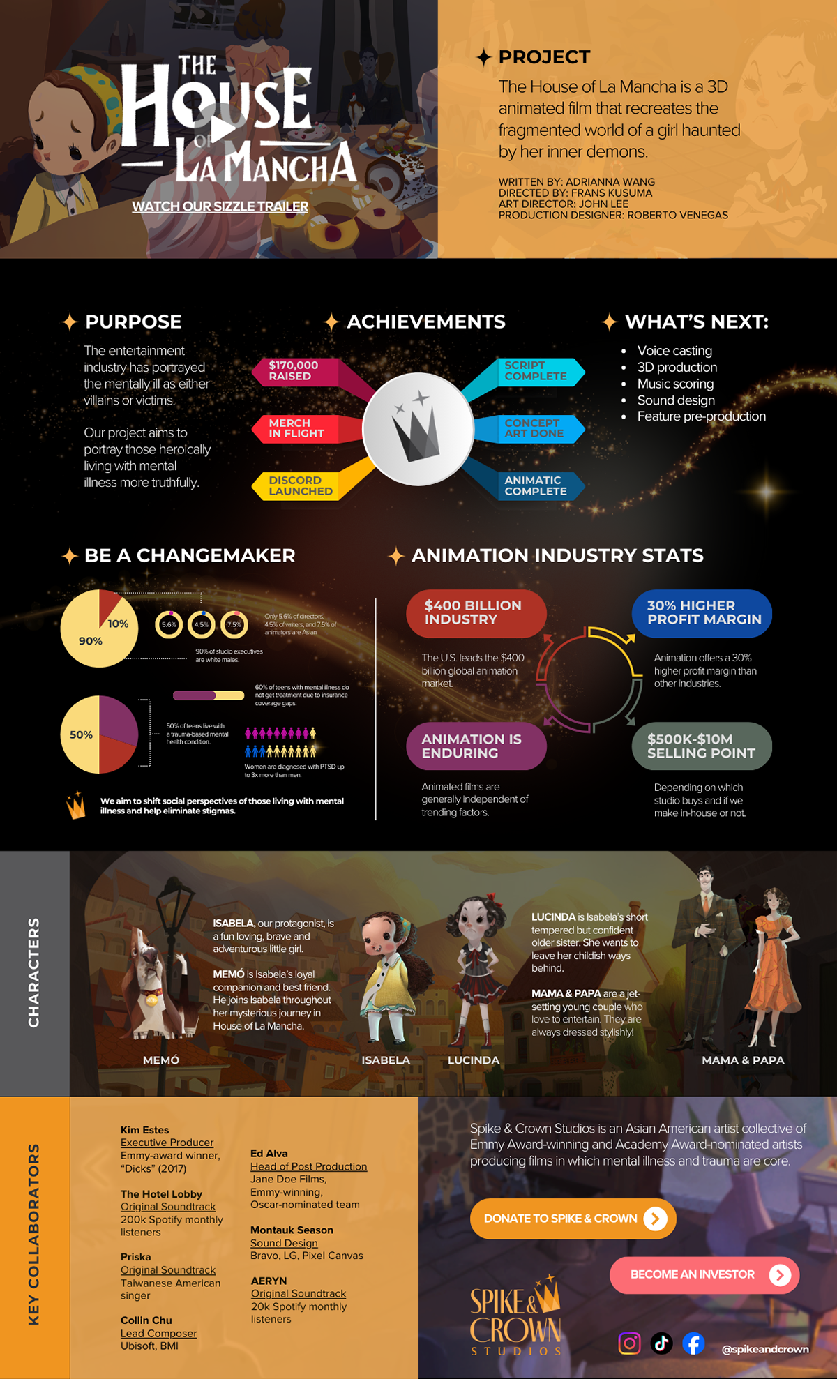 Spike & Crown Studios' mission is to spotlight stories that resonate across cultures and experiences, using animation and storytelling to illuminate complex subjects such as war, tragedy, mental health, and trauma. The Studio's aims to push narratives that inspire, connect, and foster empathy one story at a time. As Head of Brand, Juno directed the Studio’s visual identity, ensuring that every brand touchpoint authentically reflected the Studio’s mission, values, and commitment to impactful storytelling.